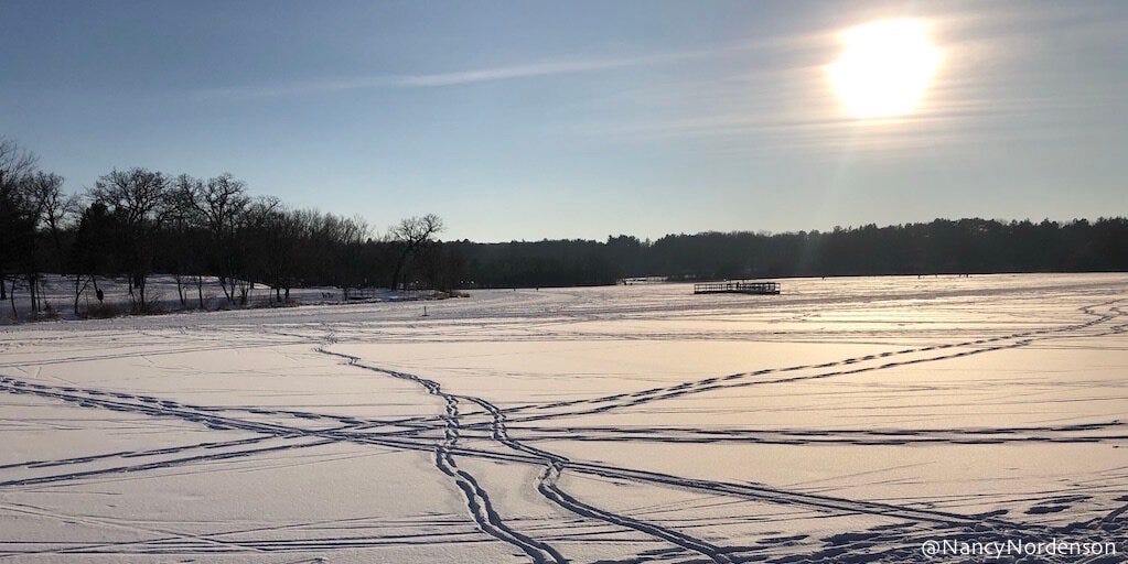 [Photo: taken of light on a nearby lake just after the new year. The winter solstice is now behind us and the days are getting longer. Thanks be to God.]