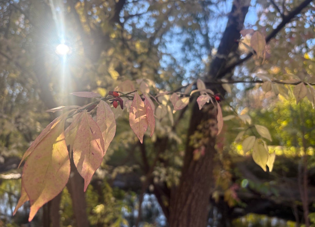 [Photo: Late fall sunshine and berries.]